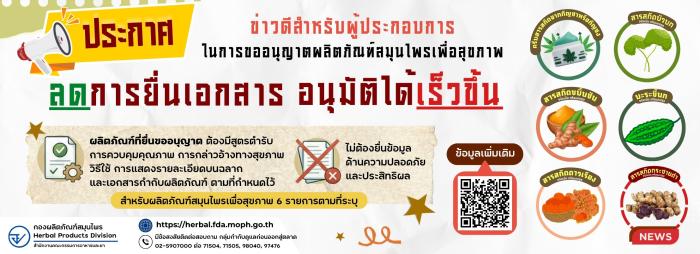ข่าวดีสำหรับผู้ประกอบการในการขออนุญาตผลิตภัณฑ์สมุนไพรเพื่อสุขภาพ ลดการยื่นเอกสาร อนุมัติได้เร็วขึ้น