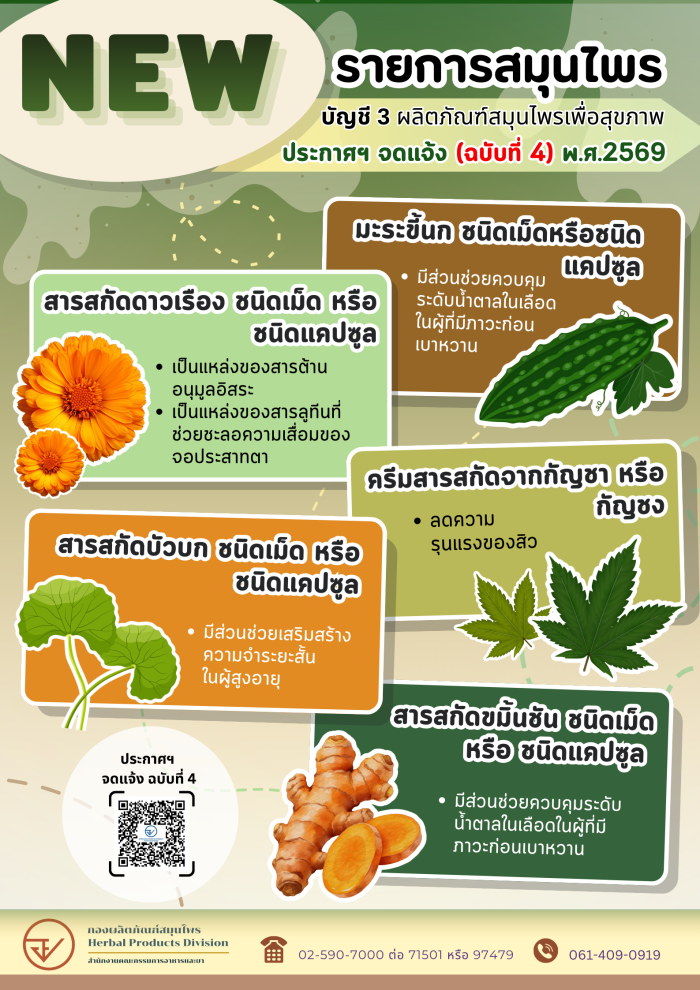 รายการสมุนไพรใหม่ ประกาศฯจดแจ้งฉบับที่ 4