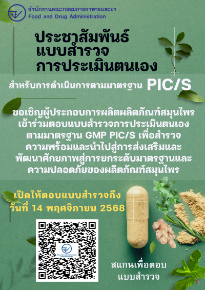 ประชาสัมพันธ์แบบสำรวจการประเมินตนเองสำหรับการดำเนินการตามมาตรฐาน PIC/S